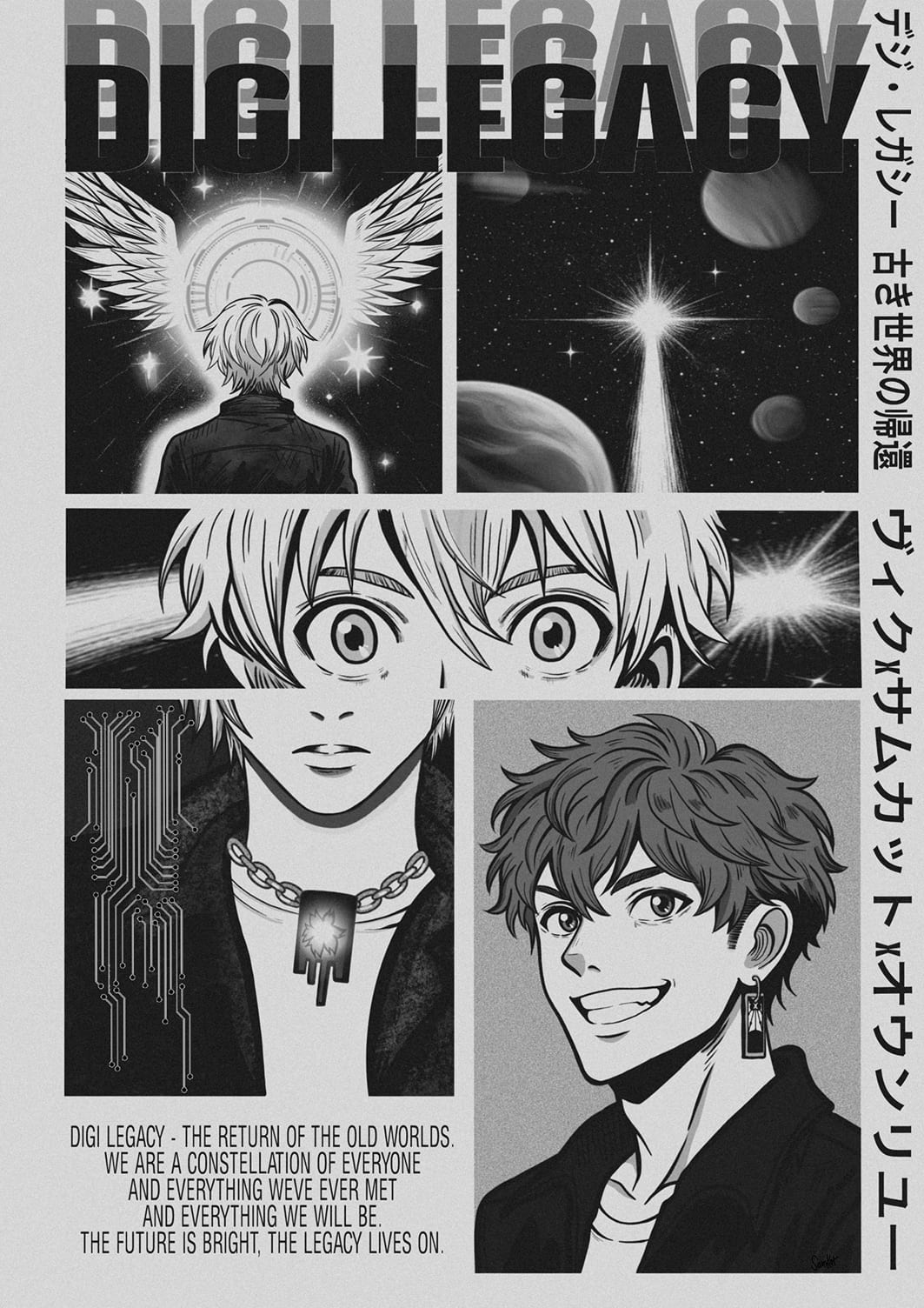 Die gesamte Geschichte der Digi Evolution in einem einzigen Kunstwerk: Das exklusive Digi Legacy Anime Poster vereint alle sechs Kollektionen in einer kraftvollen Szene. Jedes Kapitel, jeder Meilenstein, jede Transformation – eingefangen in einem epischen Anime-Motiv, das wie ein Tor in die Cyberpunk-Welt wirkt.